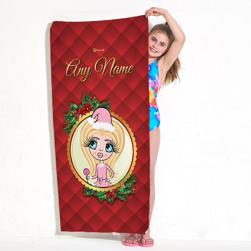 Head to the beach or the pool and some festive fun with their very own Personalized Popmoji Girls Beach Towel, with your created character at the centre of this fun & festive design.